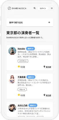 全国の演奏者と直接メッセージでやり取りでき、日程や条件の相談もスムーズに進められます。オンラインレッスンはもちろん、対面での演奏依頼・レッスンにも対応。あなたのニーズに合わせて柔軟に選択できます。